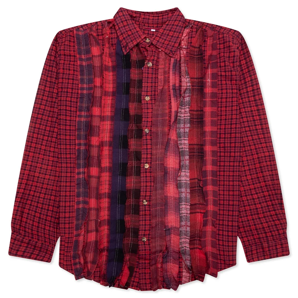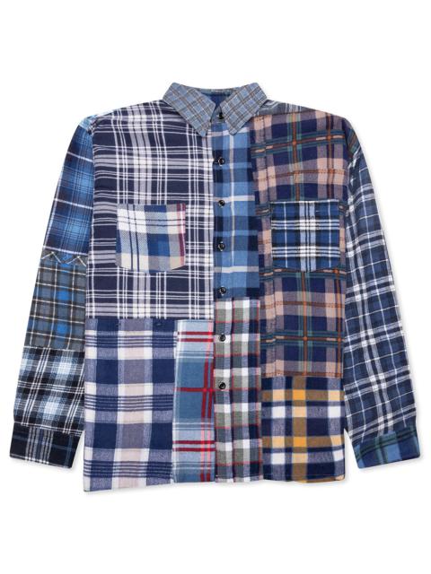 The Needles Ribbon Over Dye Flannel Shirt is a must-have apparel silhouette for any collection. The design is made from an assortment of vintage flannels stitched together to create multiple ribbon cuts, a signature for the brand. Each garment is unique and will feature various cuts and patterns. The eclectic design is composed entirely of cotton and features a button-down closure and a classic collar. To complete the shirt, the flannel has been over-dyed in multiple colors to give it a distinctive final look. - 100% Cotton - One-of-one - Reworked design - Flannel fabric - Button-down closure - Classic collar - Over-dyed pigment - Style No: QV402