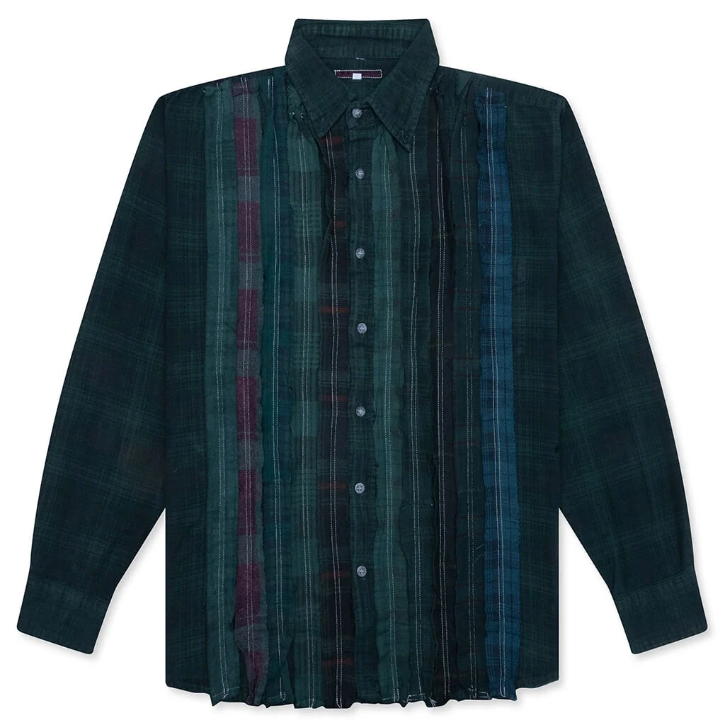 The Needles Ribbon Over Dye Flannel Shirt is a must-have apparel silhouette for any collection. The design is made from an assortment of vintage flannels stitched together to create multiple ribbon cuts, a signature for the brand. Each garment is unique and will feature various cuts and patterns. The eclectic design is composed entirely of cotton and features a button-down closure and a classic collar. To complete the shirt, the flannel has been over-dyed in multiple colors to give it a distinctive final look. - 100% Cotton - One-of-one - Reworked design - Flannel fabric - Classic collar - Button-down closure - Over-dyed pigment - Style No: RW396-B-DGRN