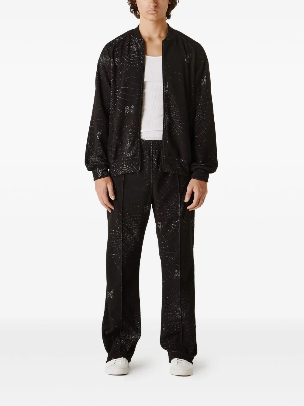 web-print track pants Highlights - Black - Web print - Butterfly print - Elasticated waistband - Side zip pockets Imported Composition Polyester 100% Washing instructions Read Manufacturer Guidelines