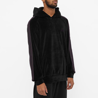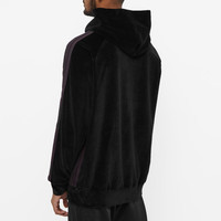 Needles’ athleisure draws heavily from retro styling, and the label really leans in on that with this hooded jacket. It’s cut from a velour fabric and detailed with taped striping down each sleeve, then embroidered with that famous butterfly motif at the chest. - 77% Cotton, 23% Polyester - Fixed Hood - Raglan Sleeves - Embroidered Branding - Made in Japan
