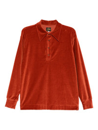 velour polo shirt Highlights - Dark orange - Front button placket - Polo collar - Long sleeves - Short side slits Imported Composition Cotton 80%, Polyester 20%