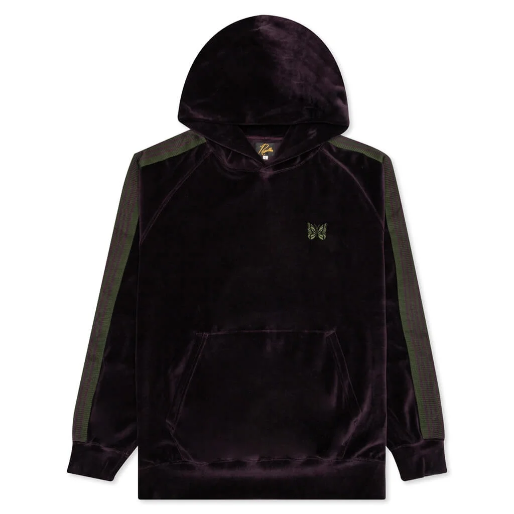 NEEDLES VELOUR TRACK HOODIE - EGGPLANT