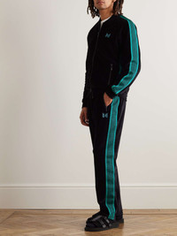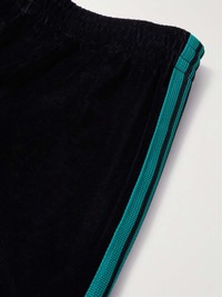 Webbing-Trimmed Logo-Embroidered Cotton-Blend Velour Track Pants