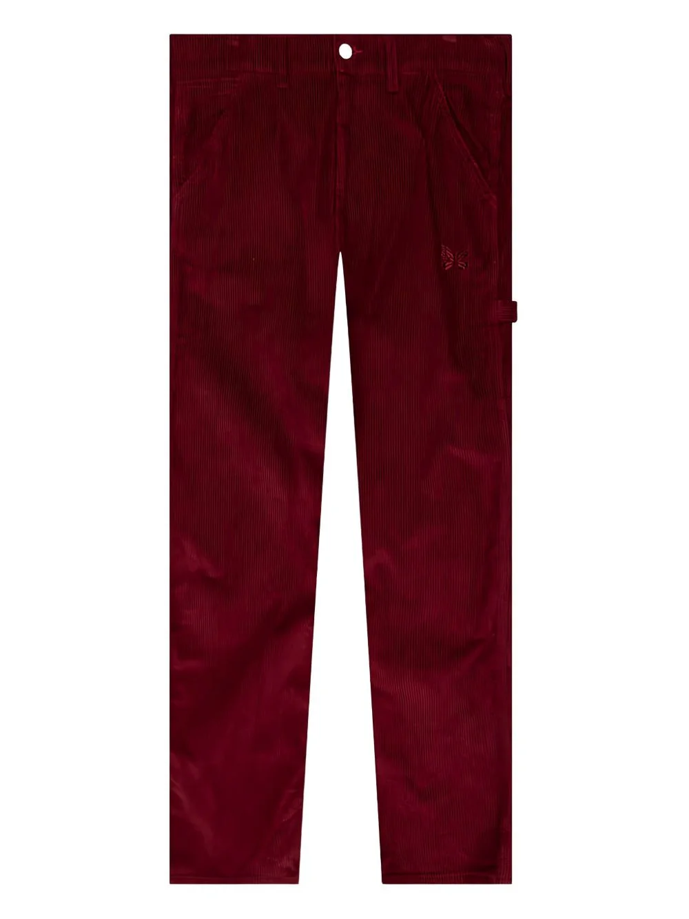 x Smith's butterfly-embroidered corduroy trousers Highlights - Dark red - Corduroy - Butterfly embroidery - Adjustable buckle strap - Multiple pockets - Logo patch Imported Composition Cotton 100% Washing instructions Read Manufacturer Guidelines
