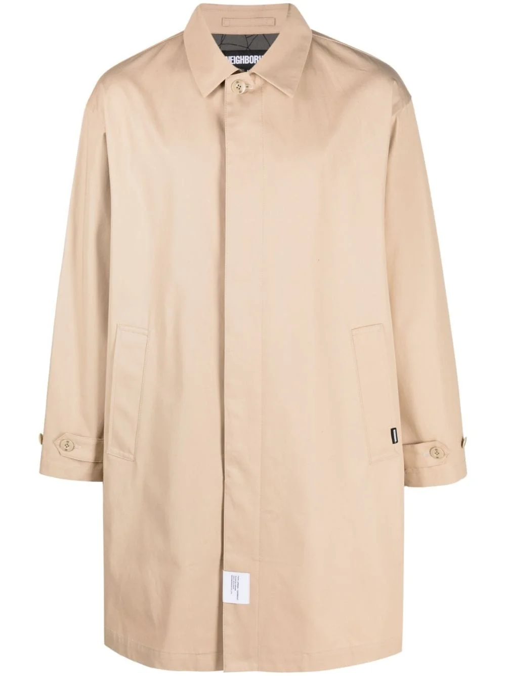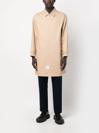 Balcollar single-breasted coat Highlights - Beige - Cotton - Logo patch to the front - Logo patch to the rear - Classic collar - Concealed front button fastening - Long sleeves - Buttoned cuffs - Two front welt pockets - Straight hem Imported Composition Outer: Cotton 100% SIZE & FIT Model measurements Height 6 ft 2 in(1.87 m) Bust/Chest 36.41 in(92.5 cm) Hips 37 in(94 cm) Waist 29.52 in(75 cm) FittingInformation Designed to be unstructured, offering a loose fit throughout Made from a midweight non-stretch fabric This piece fits true to size – take your usual size Washing instructions Dry Clean Only