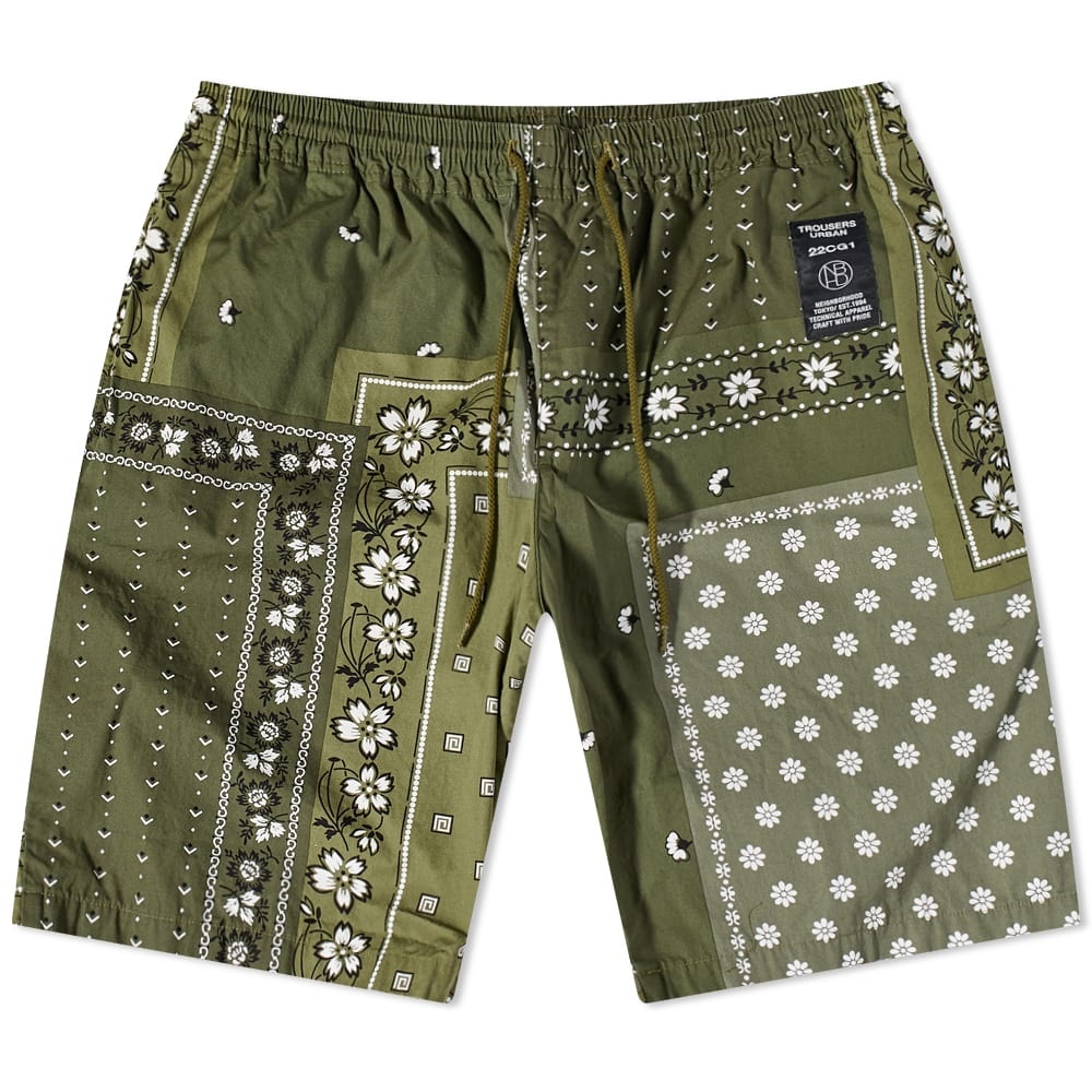 Neighborhood adds a playful touch to your summer wardrobe thanks to these green chopped shorts. Crafted in Japan from pure cotton, the pair are fitted with an elasticated drawstring at the waist - for a comfortable fit - and styled in an all-over bandana-inspired design. - 100% Cotton - Elasticated Drawstring Waist - 2 Side Pockets - Woven Brand Patch - Made in Japan