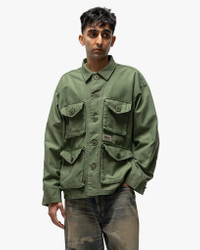 The NEIGHBORHOOD BDU Shirt LS is constructed from biostone-treated back satin, offering a rugged texture with a natural fade effect achieved through a double-dyeing process. Using a natural grain-derived pigment dye over a base dye, the fabric develops a unique patina over time. Inspired by classic military BDUs, it features four gusseted flap pockets, reinforced elbow patches, and adjustable tube sleeves. Finished with original parachute buttons, this piece balances heritage military styling with refined craftsmanship. DETAILS - 251SPNH-SHM04 - 100% cotton - Biostone-treated back satin fabric - Relaxed, wide fit - Classic collar - Button front closure - Gusseted, button-flapped chest and hip pockets - Reinforced elbow patches - Button-adjustable cuffs - Original parachute buttons - Made in China