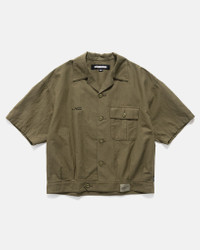 NEIGHBORHOOD Belted Officer Shirt SS fuses military tailoring with casual ease, cut from a dense yet breathable cotton-linen back satin. The silhouette is cropped and boxy, balanced by subtle pleats and an integrated belt detail at the hem. Finished with tonal embroidery and a structured chest pocket, this piece works well layered over a tank or tee through warmer months. DETAILS - 251AQNH-SHM07 - 80% cotton, 20% linen - Back satin cross-weave fabric - Boxy cropped fit - Open collar construction - Button front closure - Right chest embroidery - Buttoned chest pocket - Belted hem with tuck pleats - Woven label at hem - Side seam clip tag - Made in Japan