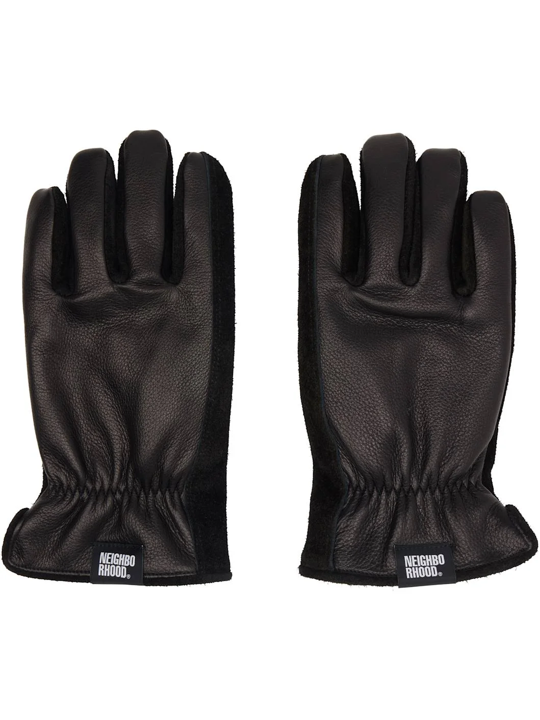 Pair of grained leather and suede gloves. · Elasticized stitching at top wrist · Logo flag at cuff · Fleece lining Supplier color: Black Leather. Made in Japan 261019M135000