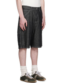 10 oz non-stretch denim shorts. · Fading throughout · Belt loops · Five-pocket styling · Zip fly · Hammer loop and patch pocket at outseam · Patch pockets at outseam · Logo patch at back waistband · Loop at back pocket · Logo-engraved antiqued silver-tone hardware · Contrast stitching in gray Supplier color: Black 100% cotton. Made in Japan 252019M193004