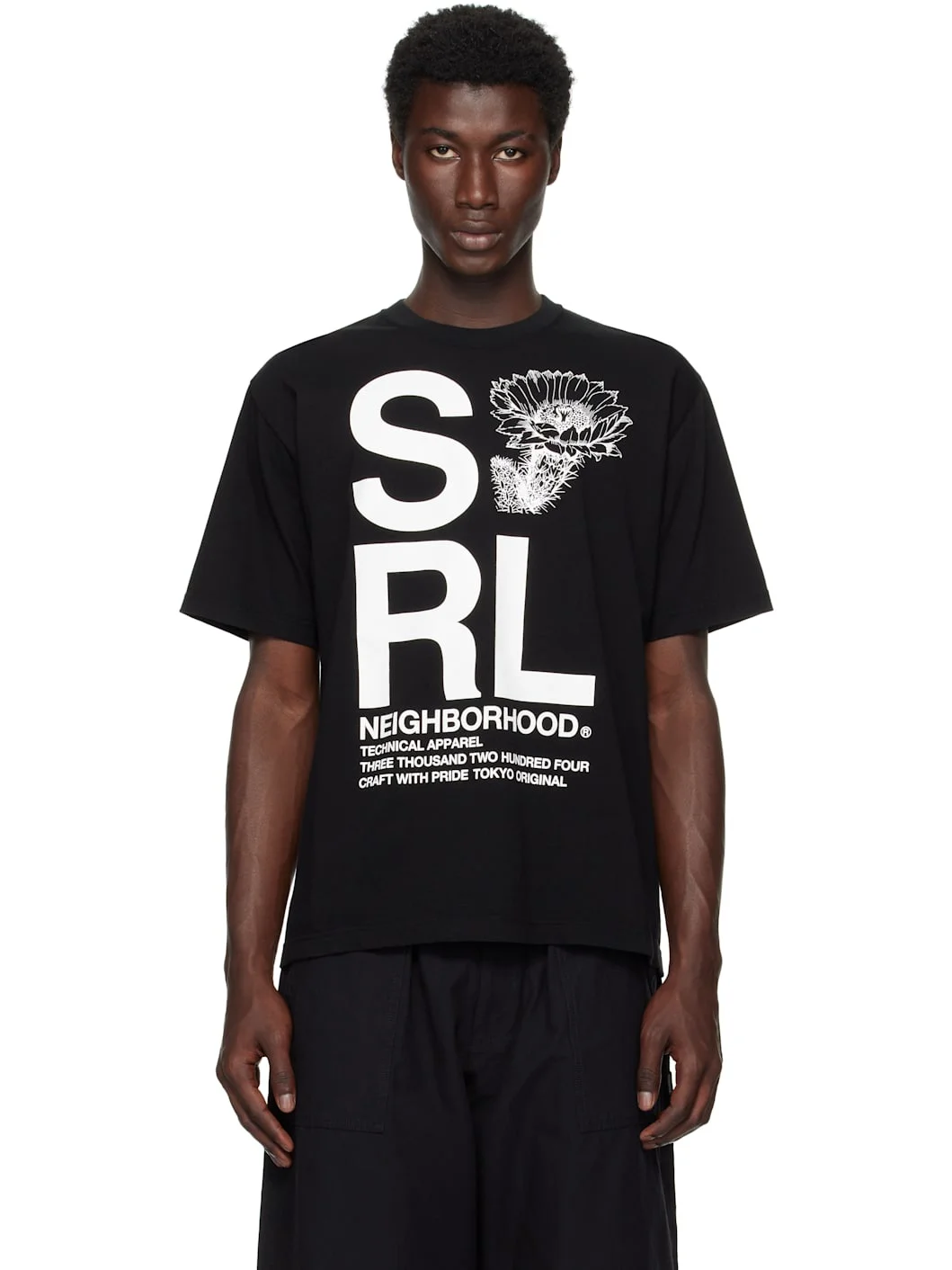 Washed cotton jersey T-shirt. · Rib-knit crewneck · Logo, text, and graphic at front Supplier color: Black 100% cotton. Made in Japan 252019M213006