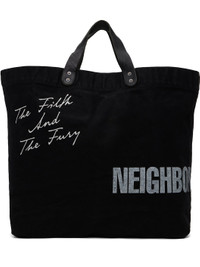 Cotton canvas tote in black. · Twin grained leather shoulder straps · Printed logo and embroidered text at face · Logo patch and printed logo at back face · Open throat · Patch pocket at interior · Unlined · H15" x W21" x D5.5" Supplier color: Black