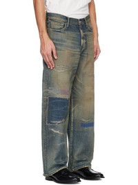 Non-stretch selvedge denim jeans. · Fading, distressing, stitching, and whiskering throughout · Straight-leg · Belt loops · Five-pocket styling · Zip fly · Hair-on leather logo patch at back waistband Supplier color: Indigo 100% cotton. Made in Japan 261019M186001