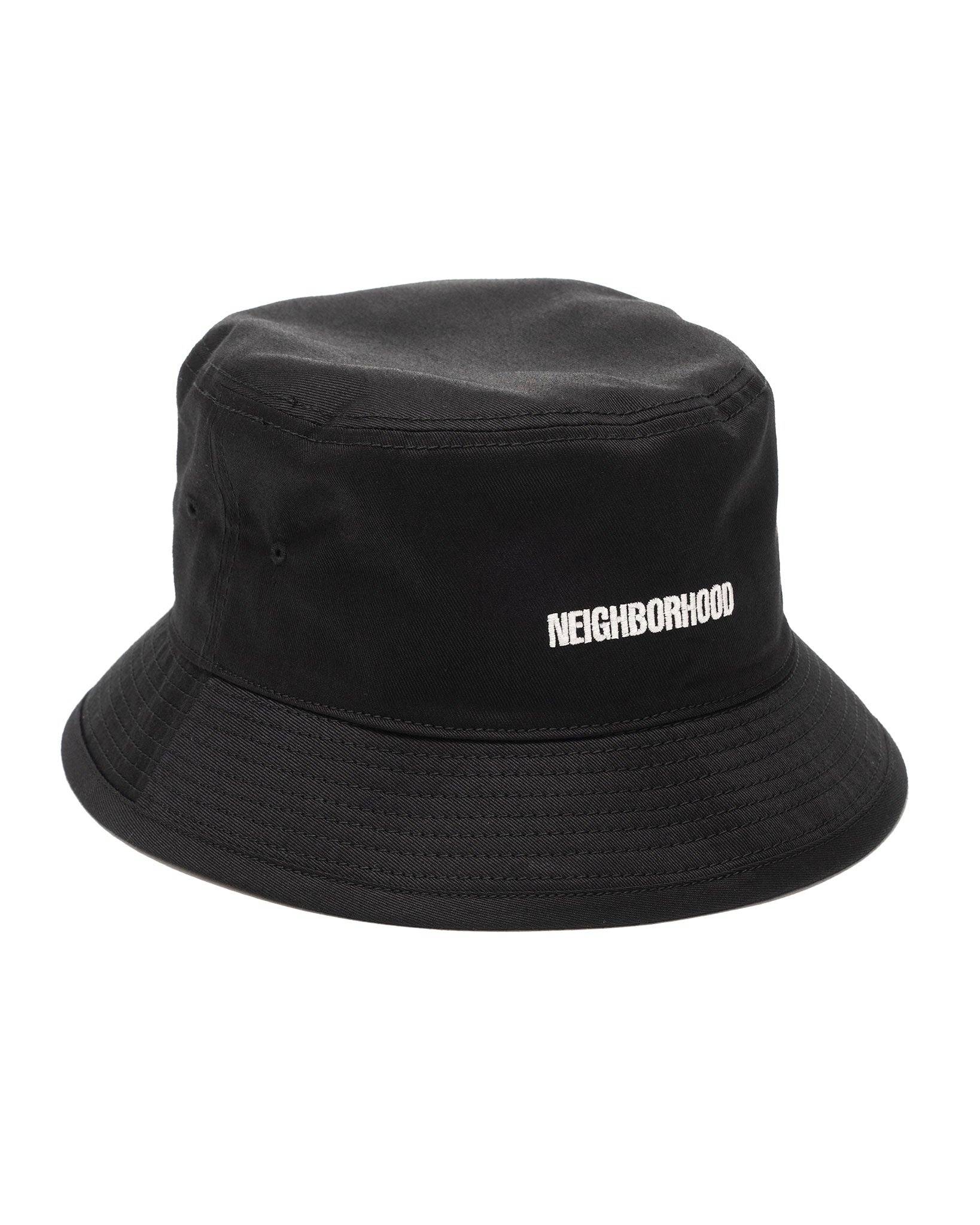 A simple and classic bucket hat constructed from a supple cotton twill. Eyelets on both sides for ventilation and finished with an embroidered logo at the front for a restrained and refined look. DETAILS - 241YGNH-HT09 - 100% cotton - Embroidered logo - Eyelet ventilation - Woven brand label - Made in Japan