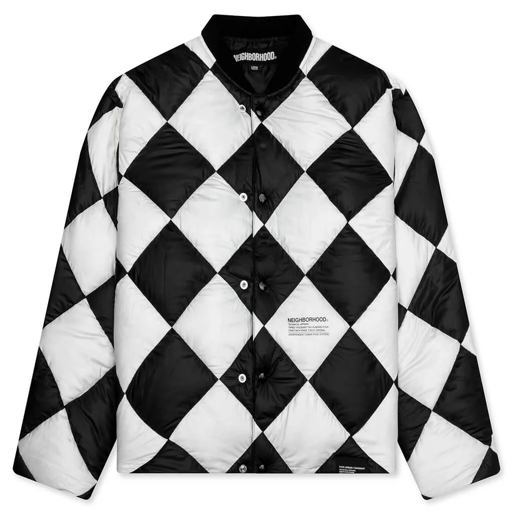 Neighborhood presents the Checker Down Jacket. Made from polyester lining for soft and comfortable feel, the jacket features an all-over checker pattern. Including a snap button closure, and ribbed collar that brings a clean yet standout look. Minimal screen-printed graphics on the front, with a brand tag add its signature branding. Style no: 252TSNH-JKM12-WH - 100% polyester - Snap button closure - Ribbed collar - Screen-print graphics - Brand tag - Style no: 252TSNH-JKM12-WH
