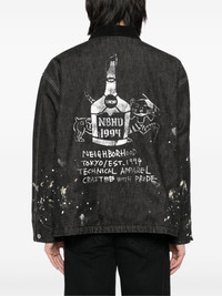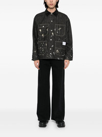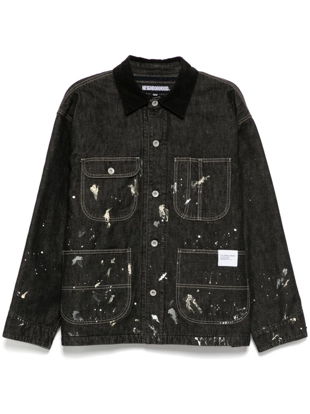 corduroy-collar washed-coverall jacket Highlights - Black - Front button fastening - Graphic print to the rear - Contrast stitching - Full lining Imported Composition Outer: Cotton 100% Lining: Wool 50%, Polyester 35%, Rayon 10%, Nylon 3%, Acrylic 2% SIZE & FIT Model measurements Height 6 ft 2 in(1.87 m) Bust/Chest 33.07 in(84 cm) Hips 35.43 in(90 cm) Waist 26.77 in(68 cm) FittingInformation Designed for a relaxed fit, this piece allows for comfort and movement when worn Sturdy and hard-wearing, this denim piece offers no stretch