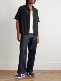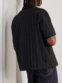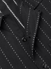 Dobby Convertible-Collar Striped Cotton-Poplin Shirt Black