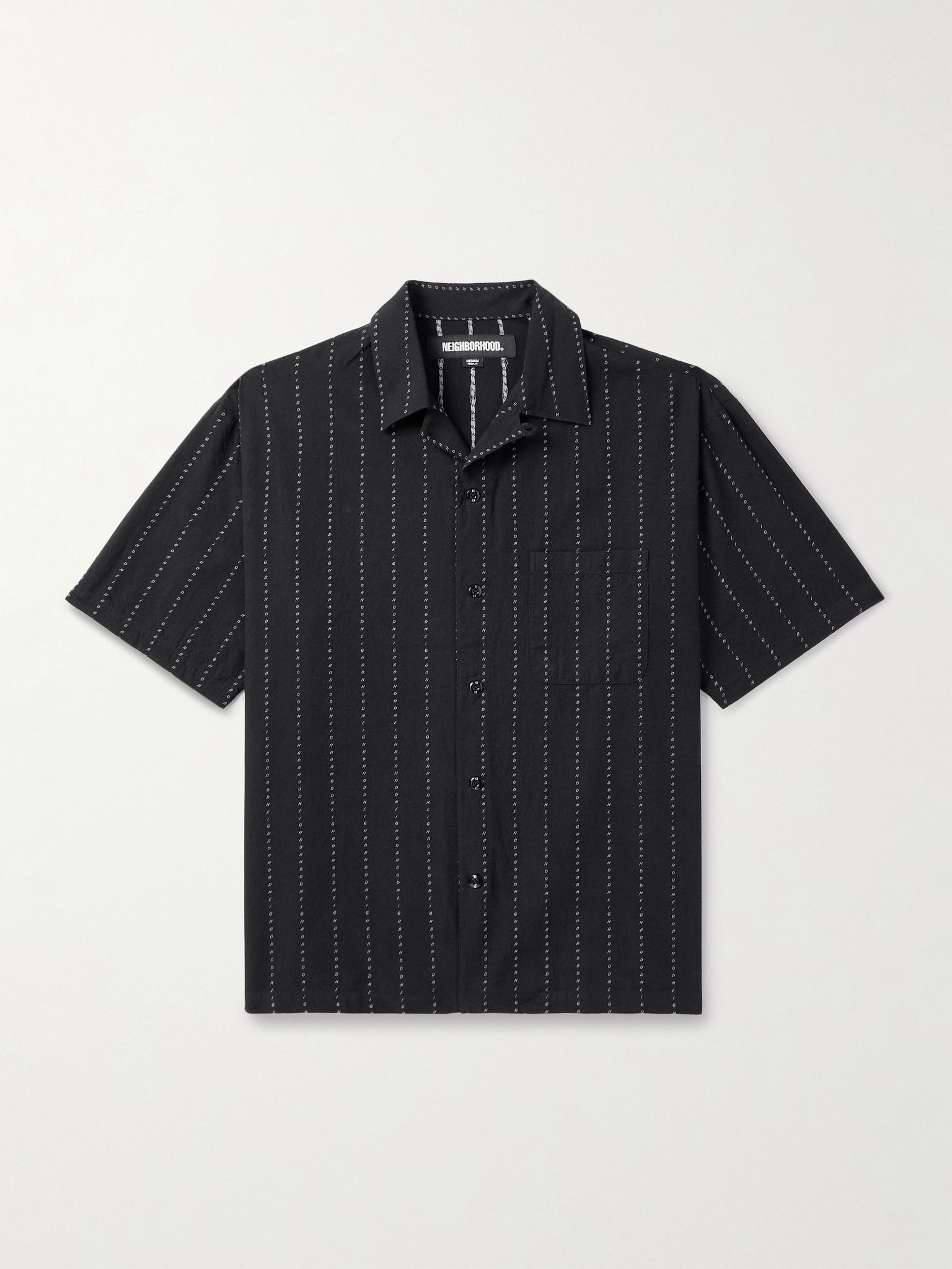 Look closely at the stripes on Neighborhood's shirt, and you'll notice that the lines spell out the brand's name in vertical letters. It's cut for a loose fit from cotton-poplin and has a convertible collar. Size & Fit - Fits true to size. Take your normal size - Designed for a loose fit - Lightweight, non-stretchy fabric - Model is shown wearing a M - Model measures: chest 38"/ 96cm, height 6'0"/ 183cm Details & Care - Black and white cotton-poplin - Button fastenings - 100% cotton - Machine wash