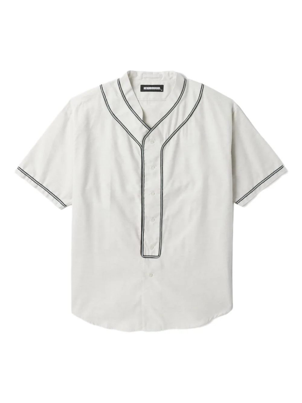 embroidered short-sleeve shirt Highlights - Off-white - Short sleeves - Button placket - Contrast stitching - Back embroidery Imported Composition Cotton 100% Washing instructions Read Manufacturer Guidelines