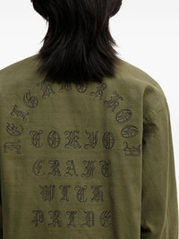 embroidered overshirt Highlights - Olive drab green - Embroidered lettering - Chest pockets - Button fastening - Long sleeves - Back embroidery Imported Composition Rayon 100%, Polyester 100%, Cotton 90%, Linen/Flax 10% SIZE & FIT FittingInformation Designed for a relaxed fit, this piece allows for comfort and movement when worn Made from a midweight non-stretch fabric Washing instructions Read Manufacturer Guidelines