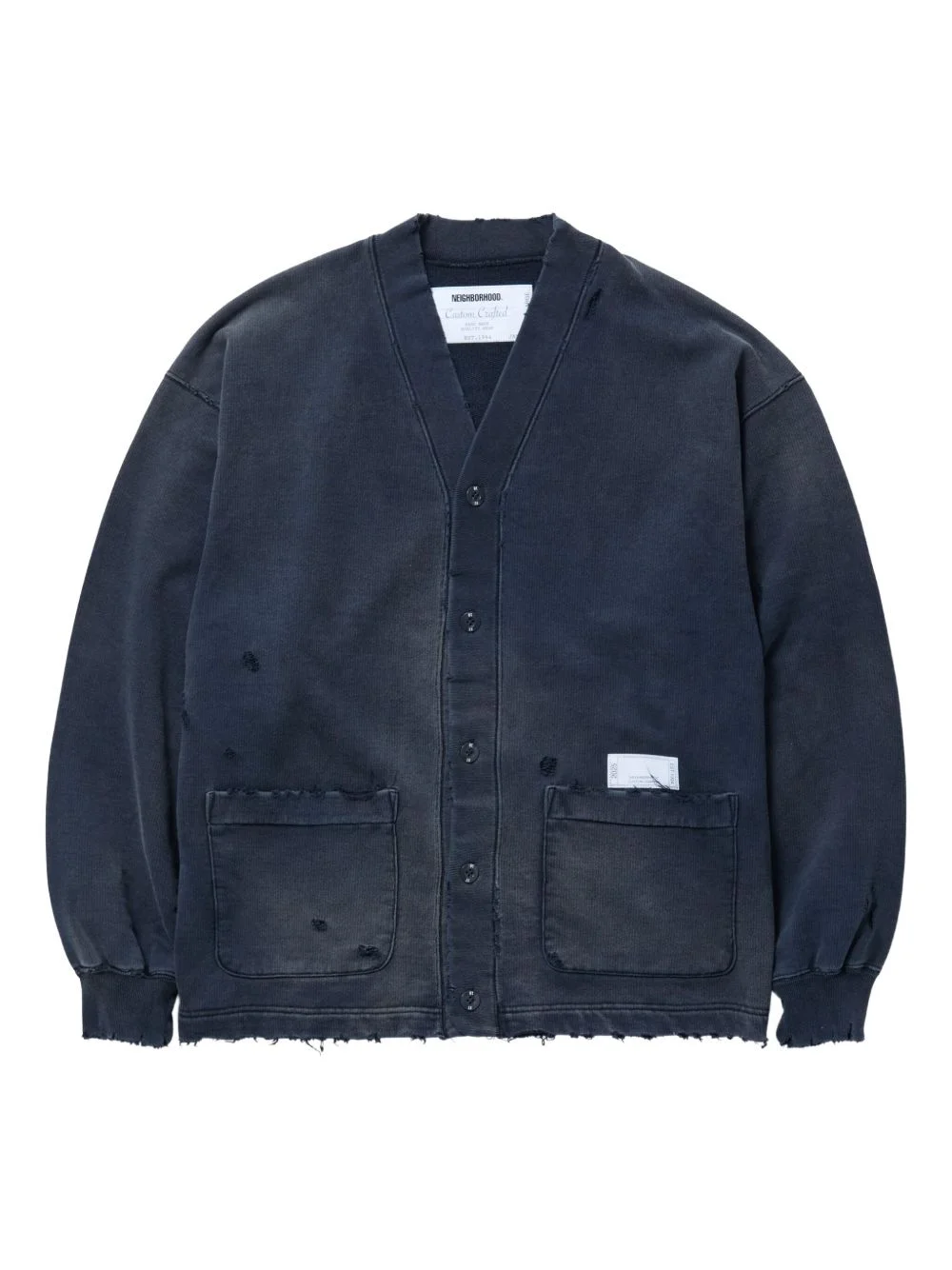 frayed-hem buttoned sweatshirt Highlights - Dark blue - Distressed detail - Button front - Patch pockets - Long sleeves - Ribbed cuffs Imported Composition Cotton 100% Washing instructions Read Manufacturer Guidelines
