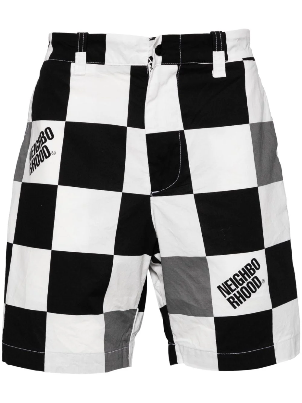 gingham logo print shorts Highlights - Black/white - Cotton - Gingham logo print - Belt loops - Concealed fly and button fastening - Logo patch to the rear - Two rear jetted pockets - Knee-length Imported Composition Cotton 100%