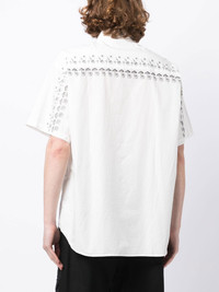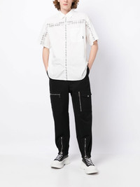 graphic-print short-sleeved shirt white/black cotton all-over graphic print classic collar front button fastening short sleeves curved hem Imported Composition Cotton 100% SIZE & FIT Model measurements Height 6 ft 2 in(1.87 m) Bust/Chest 36.22 in(92 cm) Hips 37.79 in(96 cm) Waist 28.34 in(72 cm) FittingInformation This piece fits true to size. We recommend you get your regular size Cut for a loose fit Made with a lightweight non-stretch fabric Washing instructions Machine Wash