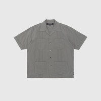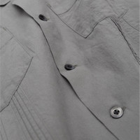 - 251AQNH-SHM05-OLV - Olive - 100% Cotton - Soft Poplin - Front button closure - Four front pockets with flap and button closure - Chain stitch embroidery on the back - Pleated detailing at the front - Woven label on the side seam - Made in Japan