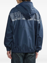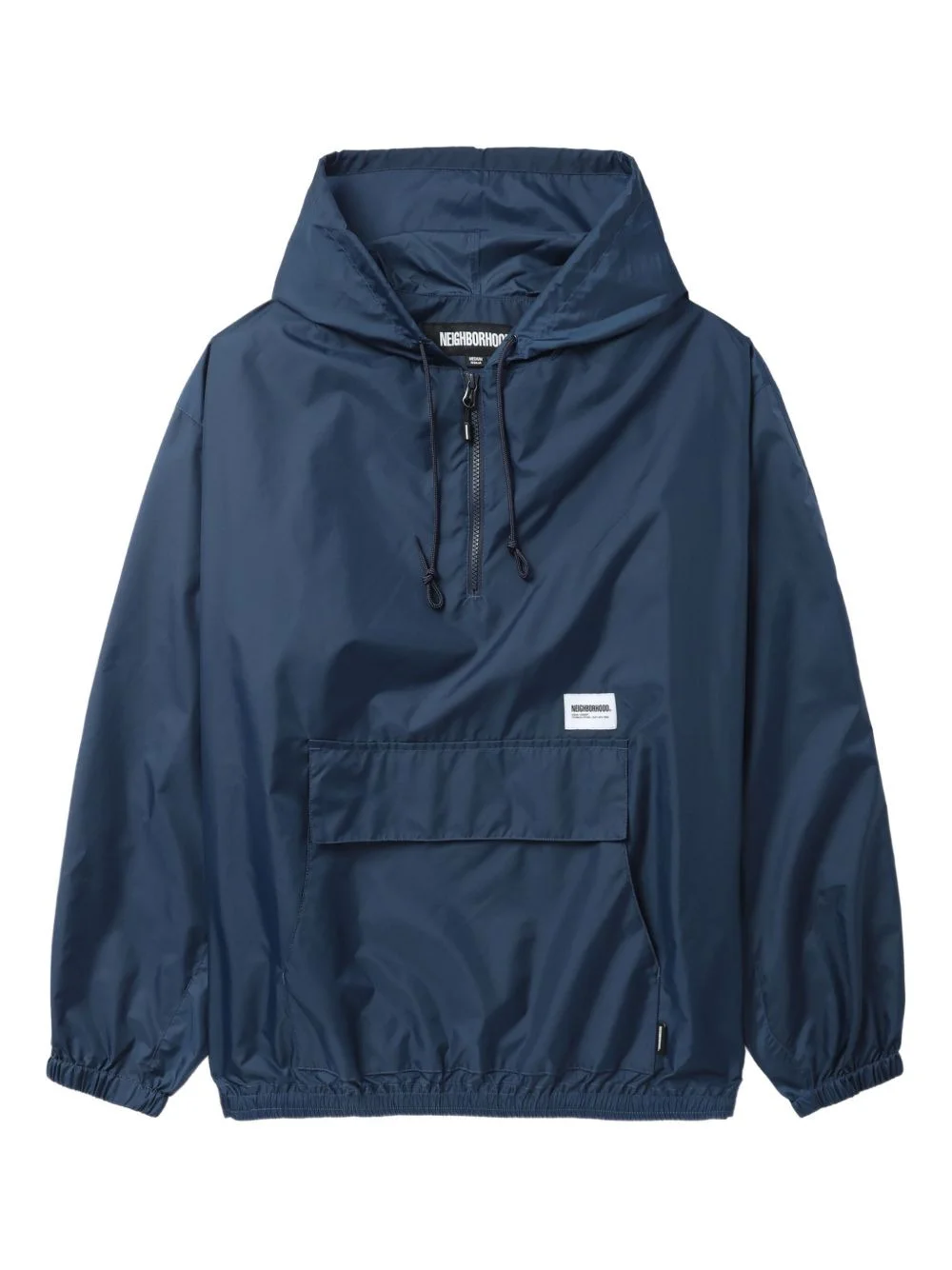 half-zip hooded jacket Highlights - Navy blue - Kangaroo pocket - Half-zip fastening - Drawstring hood - Long sleeves - Back logo-lettering Imported Composition Nylon 100% Washing instructions Read Manufacturer Guidelines