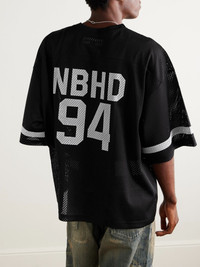 Neighborhood's T-shirt is modelled after gridiron football jerseys. Printed with the label's logo and founding year, it's been made in Japan from breathable mesh and detailed with a signature applique near the hem. Wear yours over a hoodie. Size & Fit - Model wears a size larger to achieve a looser fit - Mid-weight, semi-sheer, slightly stretchy fabric - Model is shown wearing a L - Model measures: chest 38"/ 96cm, height 6'1"/ 185cm Details & Care - Black and white mesh - 100% polyester