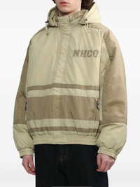 hooded panelled jacket Highlights - Beige - Panelled design - Logo print - Drawstring hood - Zipped pockets - Elasticated cuffs Imported Composition Nylon 100% Washing instructions Read Manufacturer Guidelines
