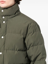hooded puffer jacket Highlights - Olive green - Front press-stud fastening - Front flap pockets - Logo tag - Long sleeves Imported Composition Polyamide 93%, Aramid 7%