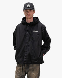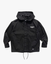 A refined take on utilitarian shirting, this hooded shirt from NEIGHBORHOOD is crafted from high-density cotton with a smooth, structured finish. The fabric is woven using compact yarns for a clean surface, then biostone-washed for a subtle, worn-in texture. Made in Japan, this versatile shirt offers both utility and understated character. DETAILS - 251AQNH-SHM04 - 100% cotton - Biostone-washed finish - Relaxed fit - Adjustable drawstring hood - Button front closure - Embroidered branding on chest - Chest patch pockets - Inseam hand pockets - Button cuffs - Adjustable drawstring hem - Made in Japan