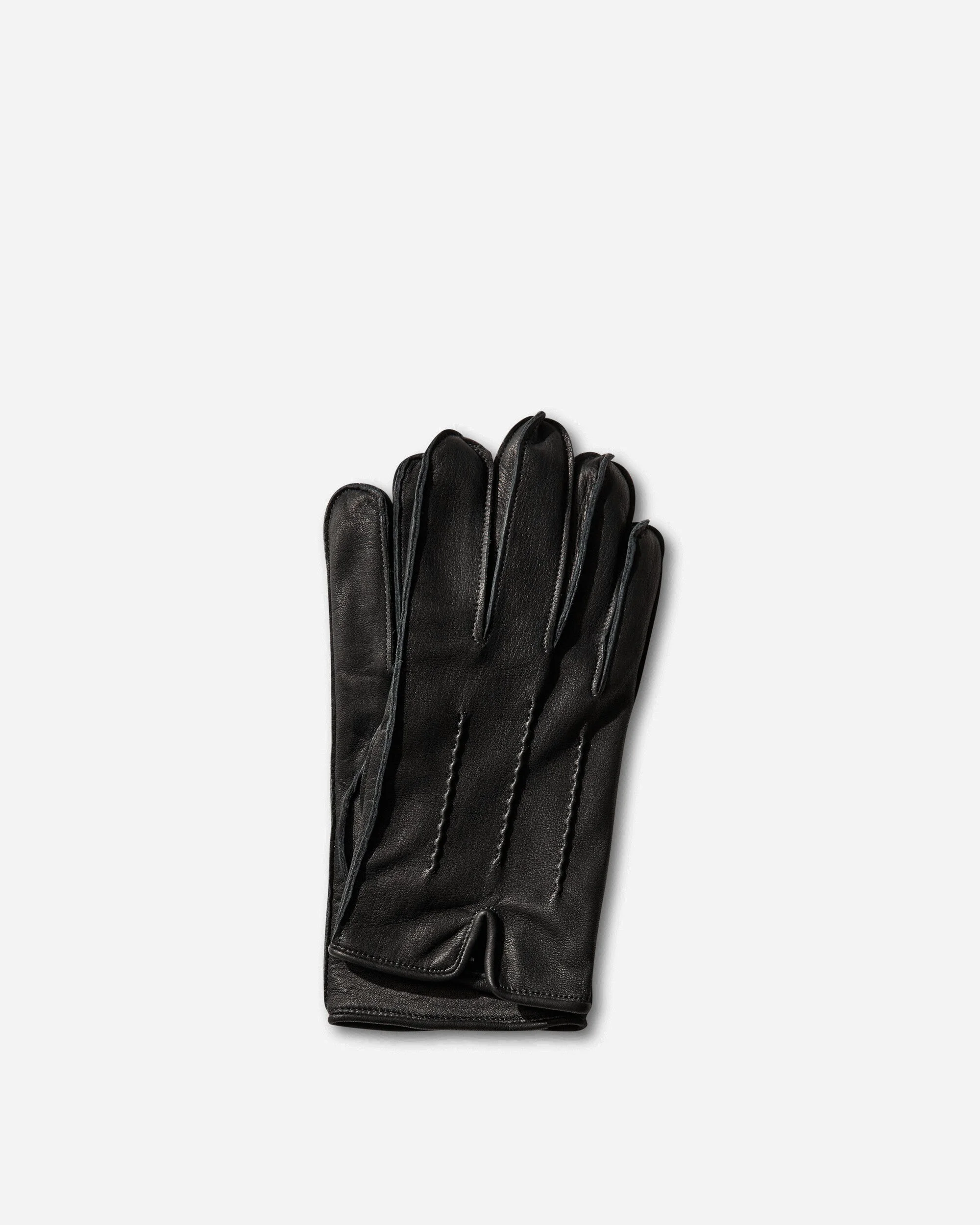 Neighborhood Leather Emb Gloves Black Cowhide leather gloves with a soft, yet firm texture similar to deerskin. Features decorative hand-stitched details on the back and embroidered text along the index and middle fingers. - 100% Cow Leather - Lining: 84% Cupro, 16% Polyester - Hand-Stitched Details - Embroidered Text - Style Code: 252DPNH-AC02 BLACK