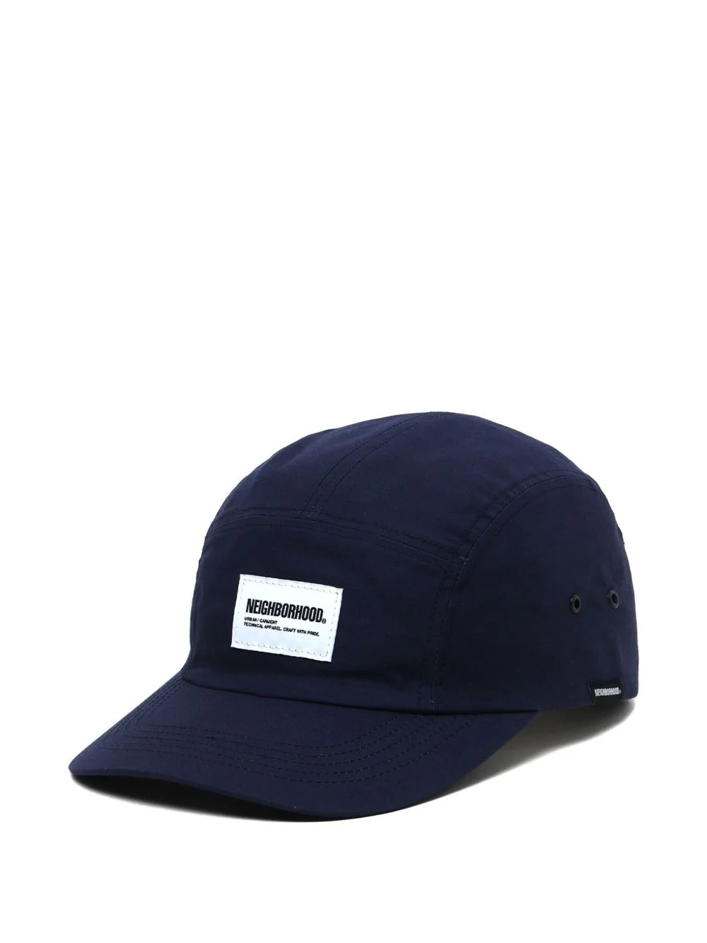 logo-patch cap hat Highlights - Navy blue - Logo patch - Flat brim - Cotton material Imported Composition Cotton 100%