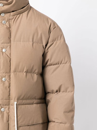 logo-patch padded jacket sand beige padded design quilted logo patch to the side drawstring hood front press-stud fastening drawstring waist long sleeves two front flap pockets straight hem Imported Composition Polyester 93%, Aramid 7% SIZE & FIT Model measurements Height 6 ft 3 in(1.9 m) Bust/Chest 34.64 in(88 cm) Hips 36.61 in(93 cm) Waist 27.55 in(70 cm)