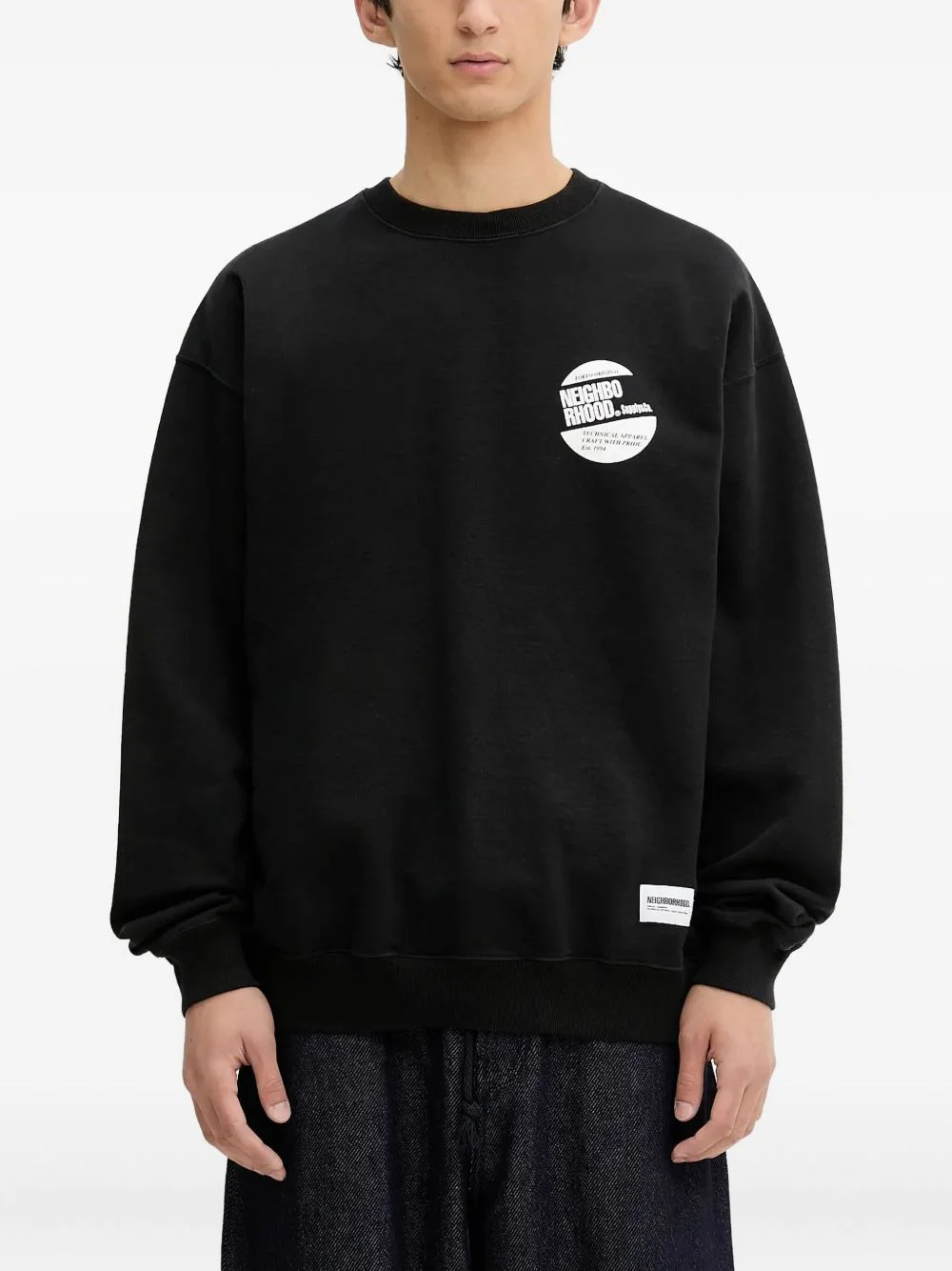 logo-print crew-neck sweatshirt Highlights - Black - Crew neck - Dropped shoulders - Logo patch - Ribbed cuffs Imported Composition Cotton 100% Washing instructions Read Manufacturer Guidelines