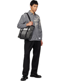 Denim tote. · Twin shoulder straps · Logo printed at face · Patch pocket at sides and back face · Patch pocket at interior · Approx. H12.5" x W13" x D4.75" Supplier color: Black 100% cotton. Made in Japan 252019M172002