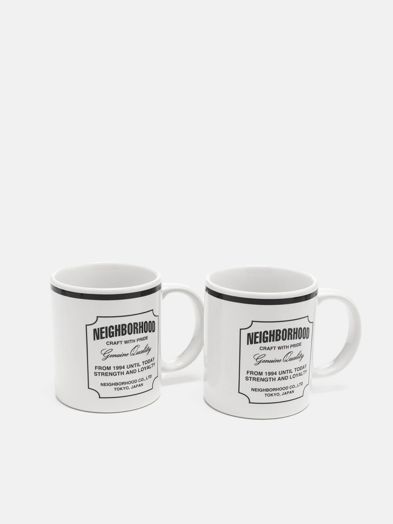 The NEIGHBORHOOD Mug Cup Set blends function and collectibility in a pair of ceramic mugs crafted in Japan. Each mug highlights the brand’s evolution, featuring the iconic “Craft With Pride” emblem on one side and minimalist contemporary branding on the other. A bold stripe at the rim completes the design, striking a balance between heritage and modern refinement. Durable and timeless, they’re everyday essentials with collectible appeal. DETAILS - 252MYNH-AC06 - Ceramic Construction - Printed exterior - Two mugs in set - Made in Japan