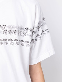 mushroom-print detail T-shirt cloud white cotton mushroom-print round neck short sleeves straight hem Imported Composition Cotton 100% SIZE & FIT Model measurements Height 6 ft 3 in(1.9 m) Bust/Chest 34.64 in(88 cm) Hips 36.61 in(93 cm) Waist 27.55 in(70 cm) FittingInformation This piece fits true to size. We recommend you get your regular size Cut for a relaxed fit Made with a mid-weight fabric Washing instructions Machine Wash