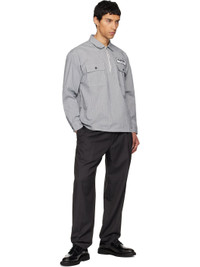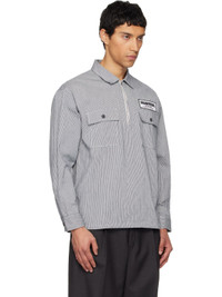 Cotton hickory-stripe shirt. · Spread collar · Half-zip closure · Embroidered logo patch and flap pockets · Logo patch at front hem · Buttoned barrel cuffs Supplier color: Indigo 100% cotton. Made in Philippines 252019M192004
