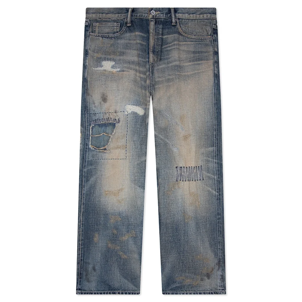 The Savage Denim DP Wide Pants from Neighborhood are composed of cotton and are custom made in-house by the brand, including the hardware. These jeans feature distressing elements and realistic aging, such as fading and other remake techniques to give a lived-in feel. Some technical details like the zip fly closure, the five pocket construction, and the custom woven labels complete the look. 251XBNH PTM07 INDI - 100% Cotton - Five-pocket design - Wide leg - Faded wash - Distressing - Custom hardware - Custom woven label - Style No: 251XBNH-PTM07-IND