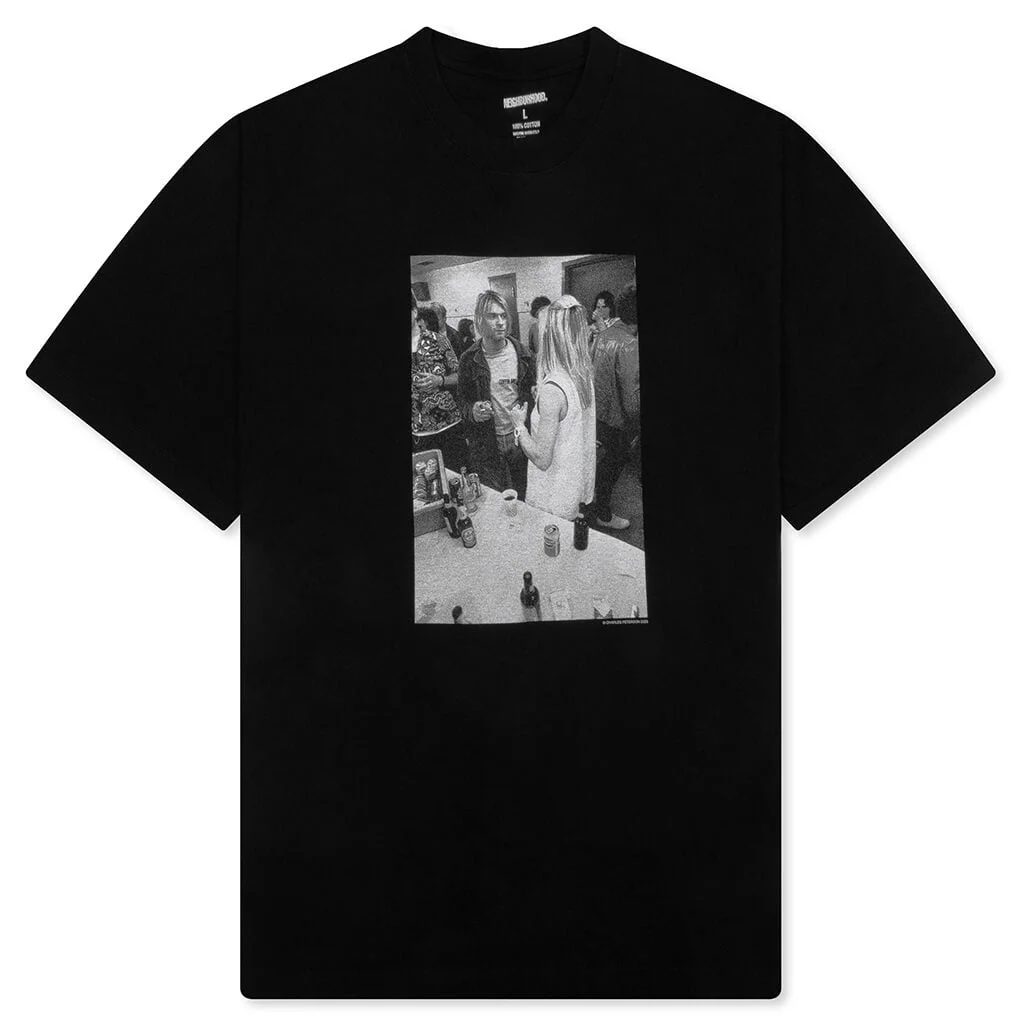 Neighborhood and famous photographer, Charles Peterson, come together to capture the grunge scene with the S/S Tee 2. Cut from cotton with a relaxed fit, it features a ribbed crew neckline making the tee comfortable and timeless. Showcased at the front is a photograph of Kurt Cobain and Kim Gordon taken by Charles Peterson, while a signature Neighborhood logo sits at the back. - 100% Cotton - Relaxed fit - Crew neckline - Ribbed collar - Screen-printed graphics - Style No: 252PCNH-ST11S-BLK