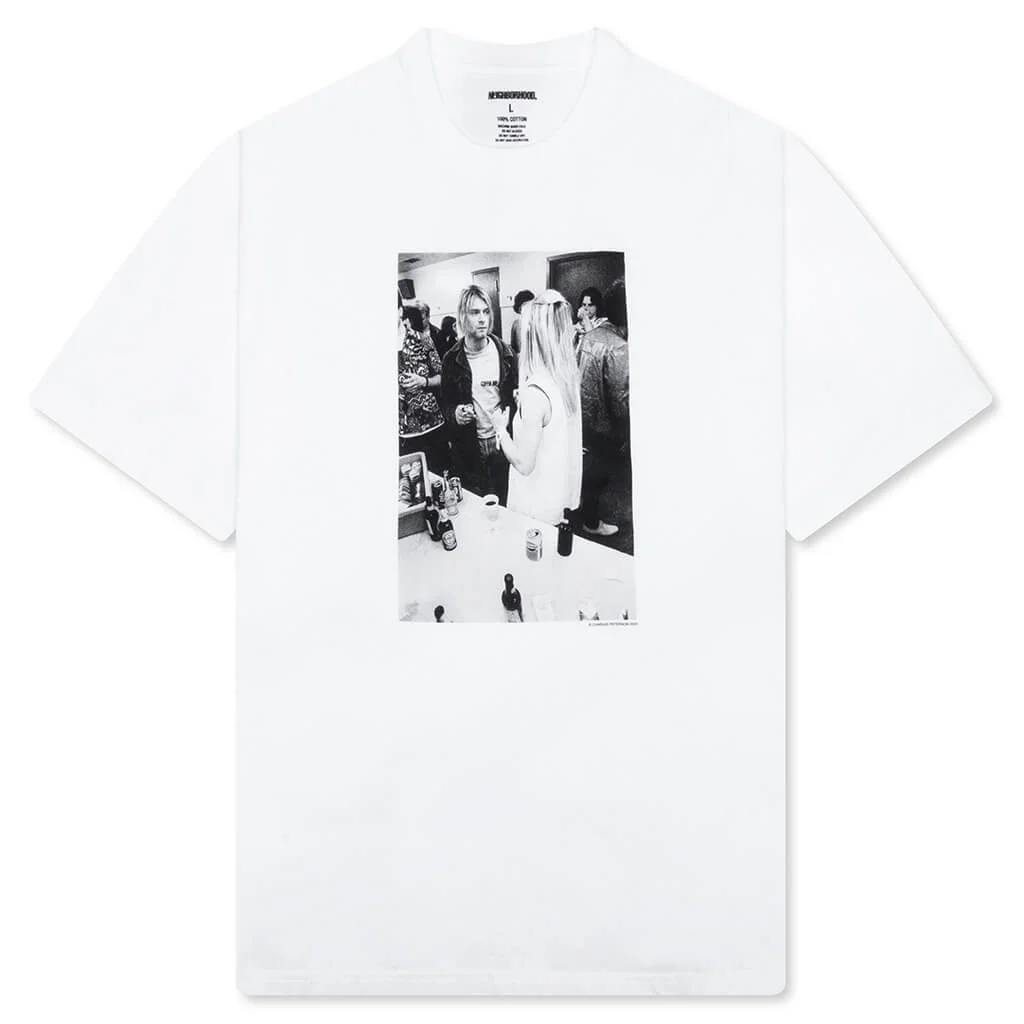 Neighborhood and famous photographer, Charles Peterson, come together to capture the grunge scene with the S/S Tee 2. Cut from cotton with a relaxed fit, it features a ribbed crew neckline making the tee comfortable and timeless. Showcased at the front is a photograph of Kurt Cobain and Kim Gordon taken by Charles Peterson, while a signature Neighborhood logo sits at the back. - 100% Cotton - Relaxed fit - Crew neckline - Ribbed collar - Screen-printed graphics - Style No: 252PCNH-ST11S-WHT