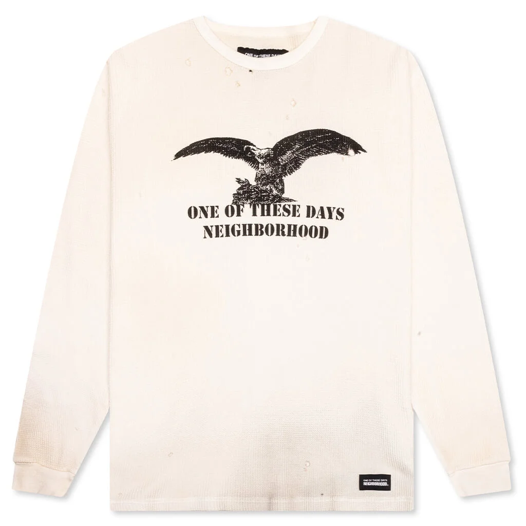 NEIGHBORHOOD X ONE OF THESE DAYS WAFFLE FABRIC L/S CREWNECK - WHITE