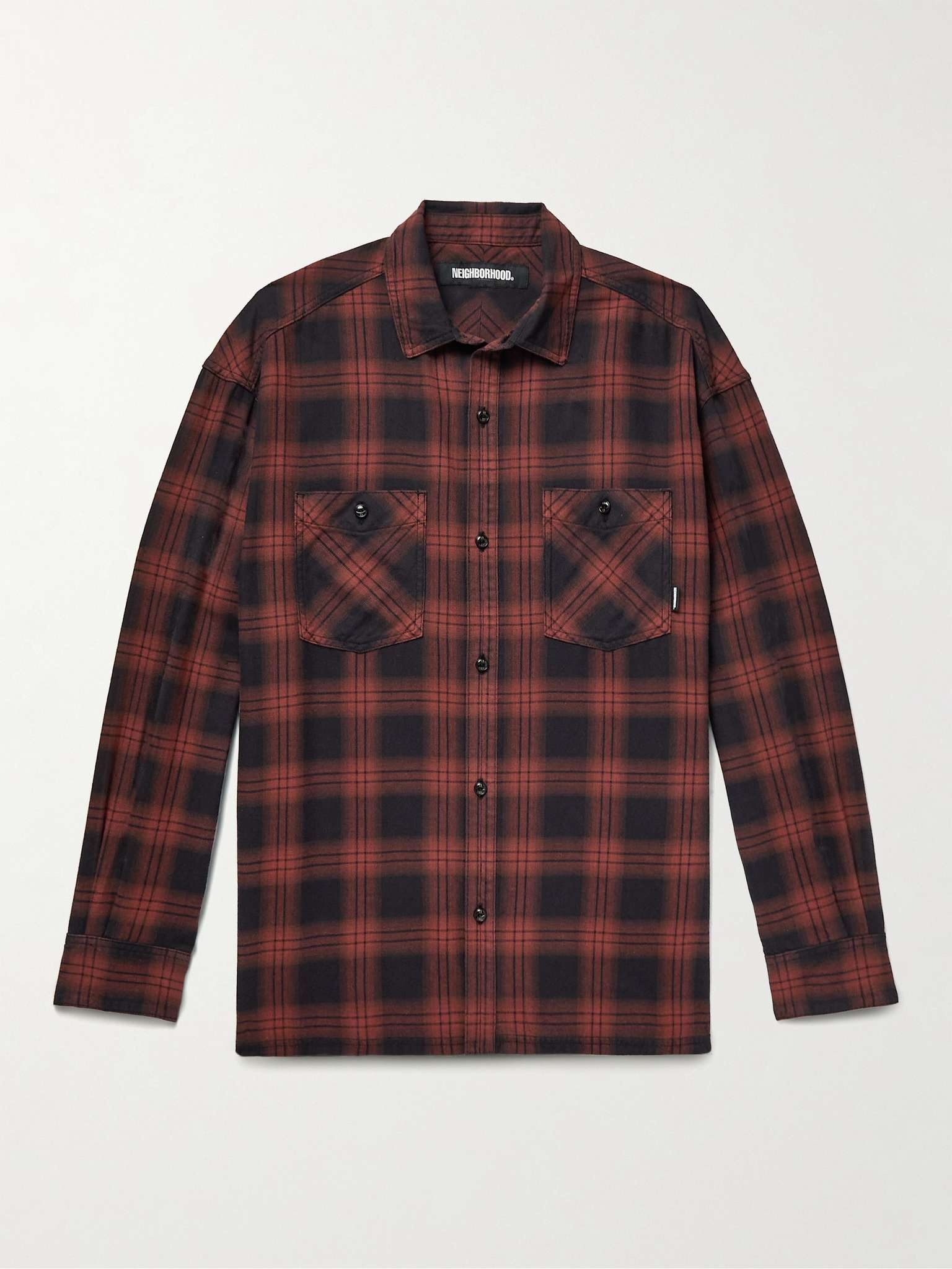 Neighborhood's 'Nel' shirt is patterned in a classic check and specially dyed to create a cool shadow effect. It's been made in Japan from brushed cotton-flannel and has a boxy cut for comfortable layering over a tee. Size & Fit - Fits true to size - This shirt is designed for a boxy fit - Mid-weight, non-stretchy fabric - Model takes a M but is wearing a L to achieve a looser fit - Model measures: chest 38"/ 96cm, height 6'2"/ 188cm Details & Care - Red and black cotton-flannel - Button fastenings - 100% cotton - Machine wash - Made in Japan