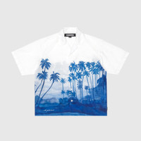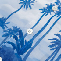 - 241TSNH-SHM07 - Blue - 100% Polyester - Broadcloth fabric - Watercolor landscape printed throughout - Front button closure - Front chest pocket - Label at the side seam - Camp collar - Loose fit