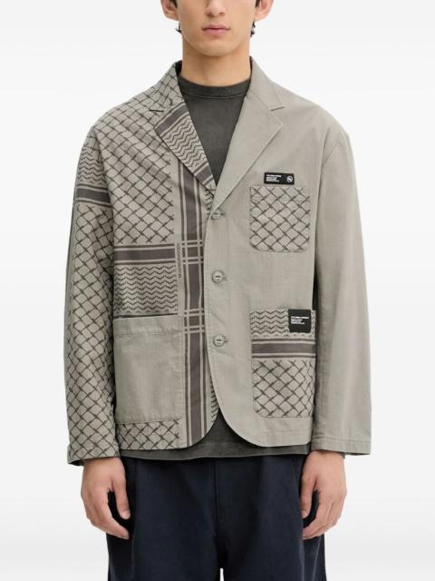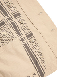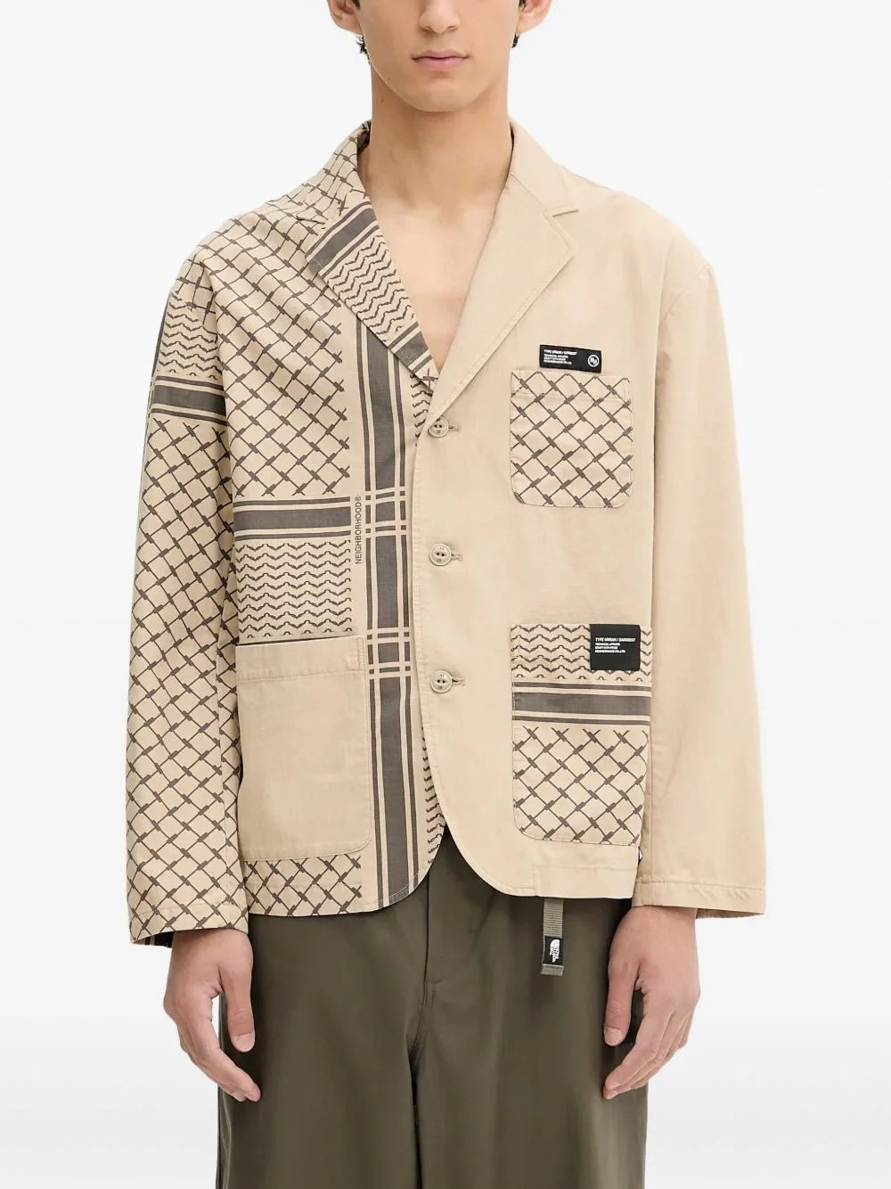 patterned pocketed jacket Highlights - Beige - Keffiyeh pattern - Two patch pockets - Button fastening - Contrasting panel - Straight hem Imported Composition Cotton 100% Washing instructions Read Manufacturer Guidelines