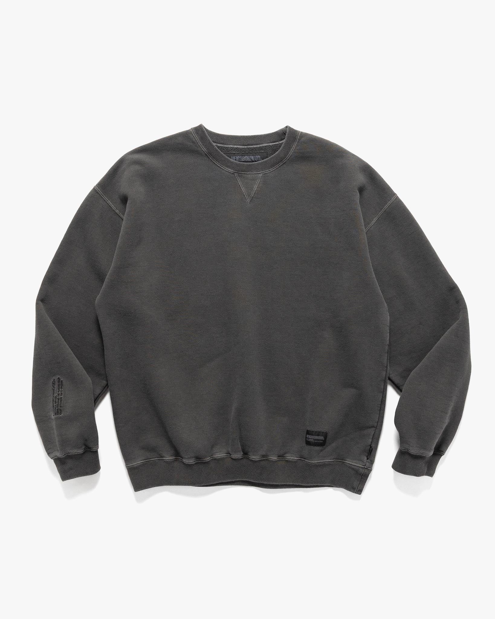 This pigment-dyed crewneck from NEIGHBORHOOD balances comfort and subtle design with a refined, worn-in look. Crafted in Japan from heavyweight cotton-lined fabric, it features minimal branding with a tonal embroidered logo on the sleeve. A V-shaped neck gusset adds classic athletic reference, while the dyed finish enhance the garment's texture and depth. DETAILS - 251FPNH-CSM10 - 100% cotton - Pigment dye finish - Relaxed fit - Crewneck design - V-gusset at neck - Ribbed neck, cuffs, and hem - Embroidered branding on sleeve - Made in Japan