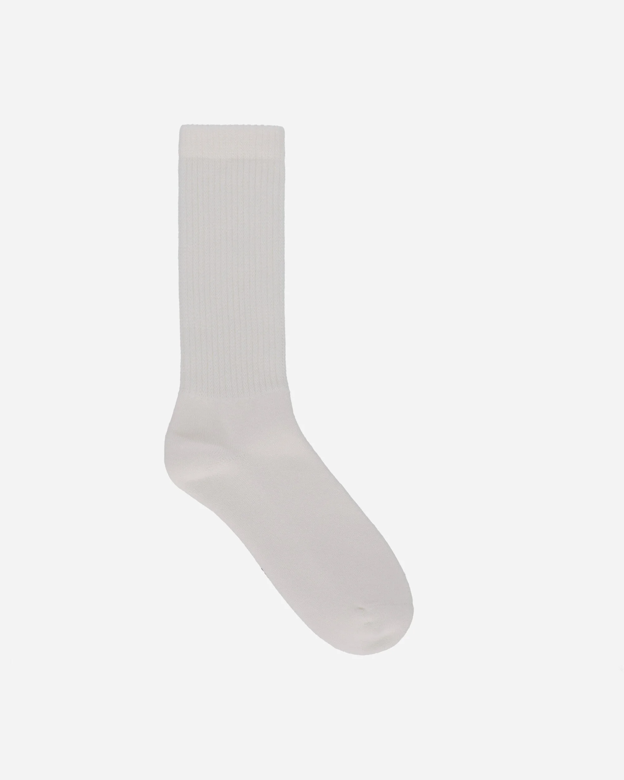 Neighborhood Plain Socks White Ribbed pile socks in crew length with logo printed on soles. - 85% Cotton, 7% Polyester, 5% Nylon, 3% Polyurethane - Ribbed Cuffs - Crew Length - Printed Logo - Style Code: 242KWNH-UWM02 WH